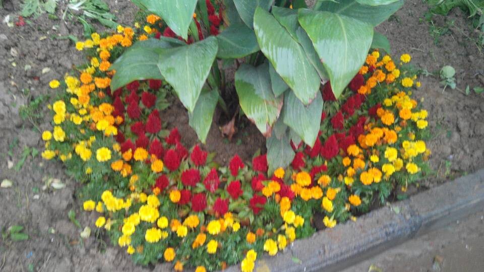 看,美吗?这是大爷用我们欢度国庆时留下来的花为我们整理的,现在就在公司院子的花坛里,大爷从来没有学过园艺,虽然不专业,但是他的浓浓的爱意相信我们每一个人今天都感受到了。