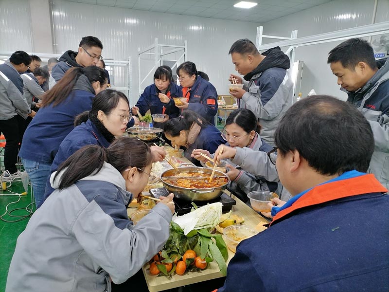 厂区的同事们也是热热闹闹的开始了包饺子活动,还有的同事正在精心准备着火锅食材,冬天和火锅是绝配哦!