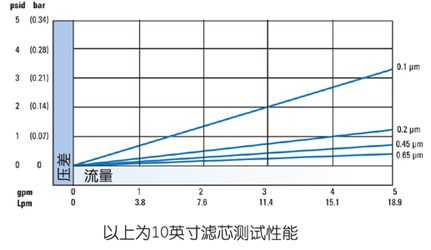 MMP滤芯对清洁水的流量性能: