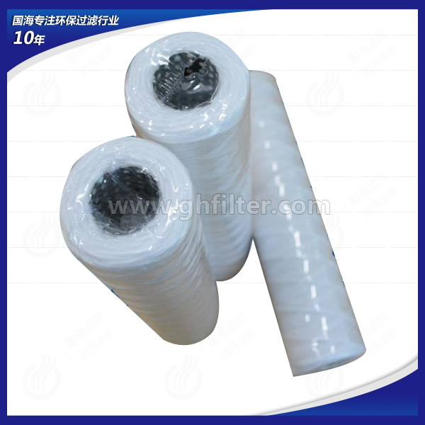 新乡国海滤器公司生产的40英寸PP线绕滤芯——多种过滤精度系列由纺织纤维粗纱缠绕在骨架上,外疏内密,可有效除去流体中的悬浮物,铁锈,颗粒杂质,根据控制滤层缠绕密度控制精度.
