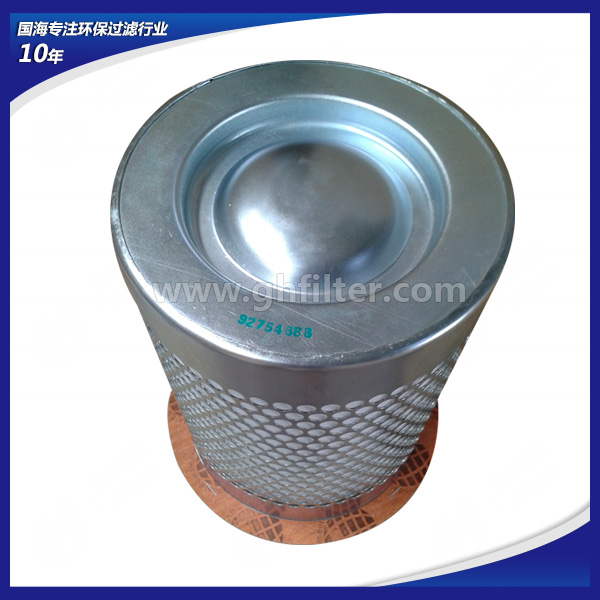 从空压机出来的压缩空气夹带大大小小的油滴,大油滴通过油气分离器易于分离,而小油滴(悬浮油微粒)则必须通过油气分离器的微米级玻纤滤料层过滤。油气分离滤芯92699198——空压机三滤系列采用较先进的防腐高效的超细纤维凝聚材料作为过滤主体,使压缩机输出空气中3μm以上的固体颗粒能全部被滤除,而极微小的约0.01-1μm的油水气溶解体在通过滤芯时被凝聚成较大的油滴,积聚在滤芯底部,再通过滤芯底部凹处的回油管虹吸返回至润滑系统从而使压缩机排出更加纯净,无油的压缩空气。新乡市国海滤器有限公司是一家专业技术生产型企业,多年致力于液压和气动系统净化的研究和生产工作,生产出的油气分离滤芯92699198——空压机三滤系列完全可以互换原装产品,请放心采购使用。