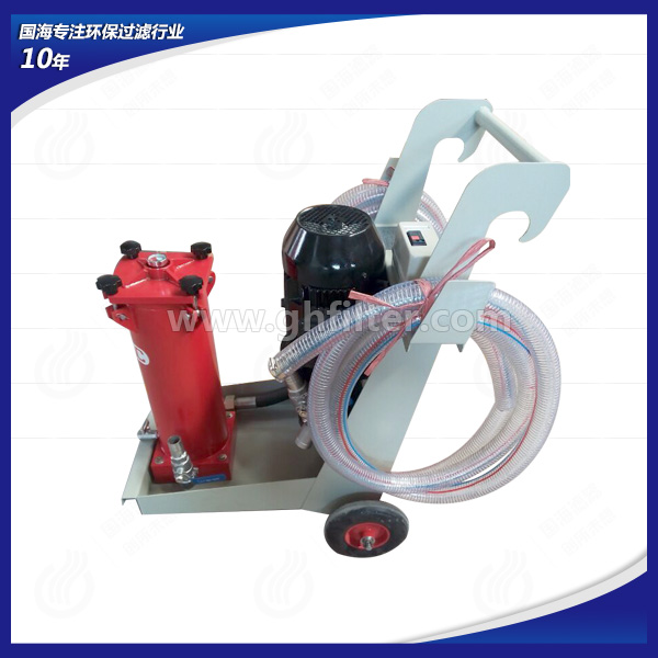 高精度手推式滤油机 LYC-B系列滤油机可以过滤的油液有很多种,液压油滤油机过滤介质按照类型不同大致有:一般液压油过滤为主;特殊介质有水乙二醇、乳化液这种要求滤油机本身必须经过防锈处理或者是精细过滤器采用不锈钢材质设计;易燃易爆性油液有煤油、柴油、汽油等,要求设备本身采用防爆型设计;以及若是用到高粘度齿轮油的话,我们也可以使用高粘度过滤泵为您量身定制。